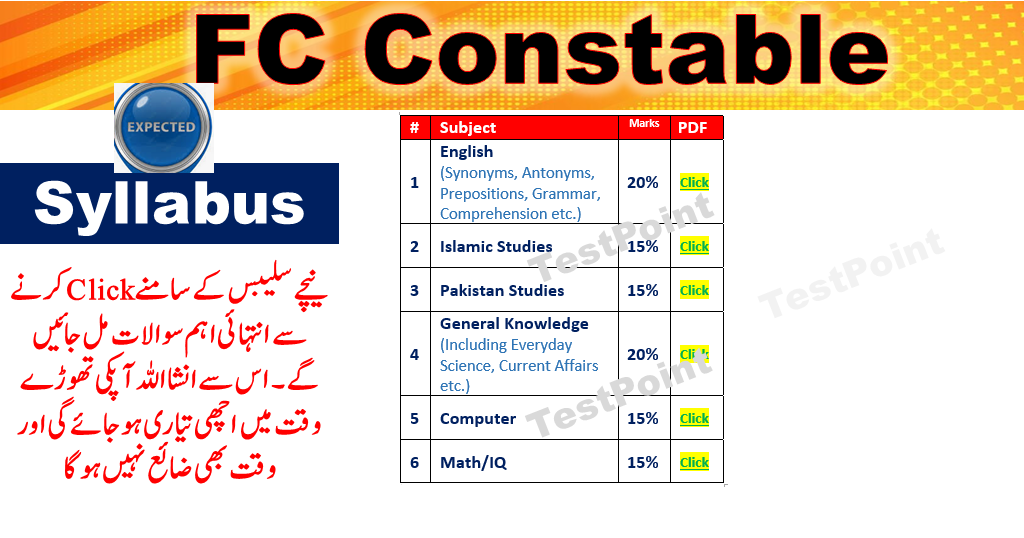 Federal Constabulary FC Constable Syllabus, Paper Pattern,