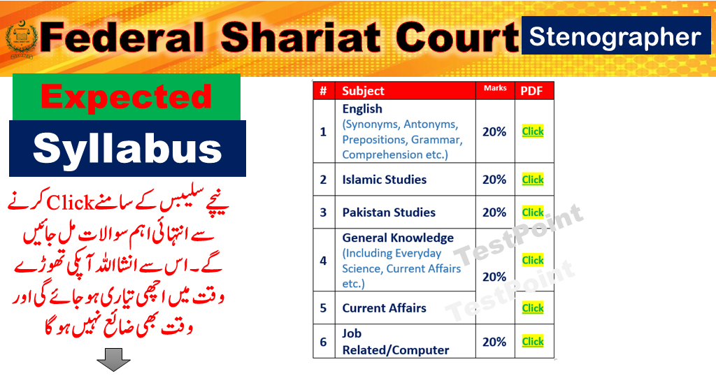 FEDERAL SHARIAT COURT Stenographer Syllabus, Paper