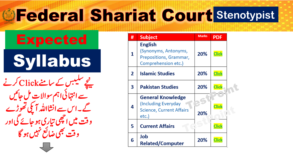 FEDERAL SHARIAT COURT Stenotypist Syllabus, Paper