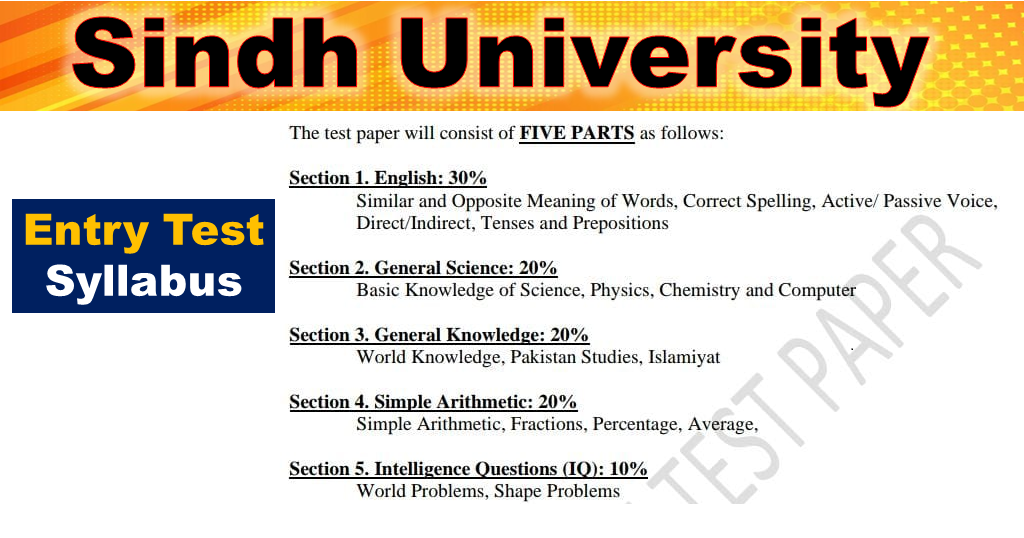 Sindh University Entry Test SUTC Syllabus, Paper Pattern, sample